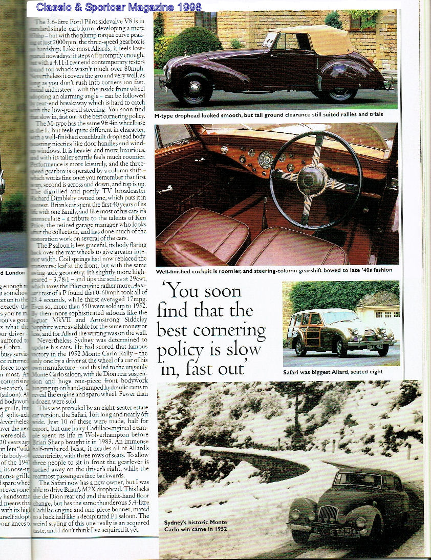 team prize with a near miss at an outright win. Sydney Allard won the Monte